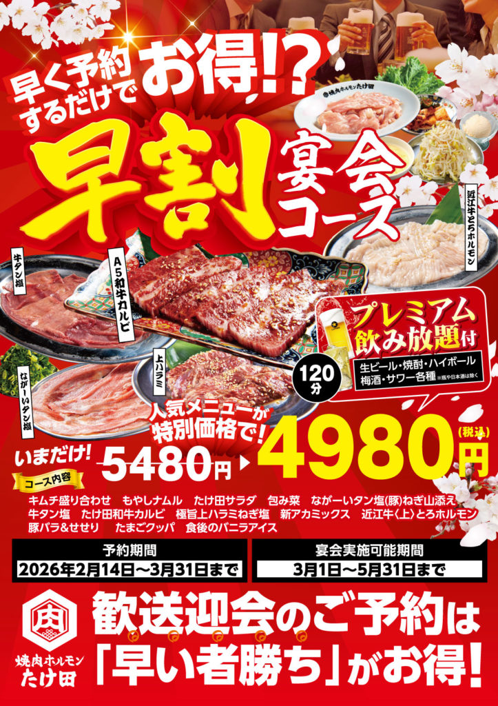 📅宴会実施可能期間:3/1〜5/31